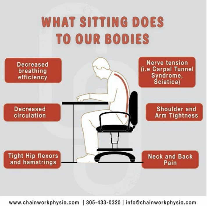 Sitting too often not only causes us to leade a generally more sedentary lifestyle, but it directly causes several mechanical problems in our bodies. These problems can snowball over time and significantly decrease our quality of life.